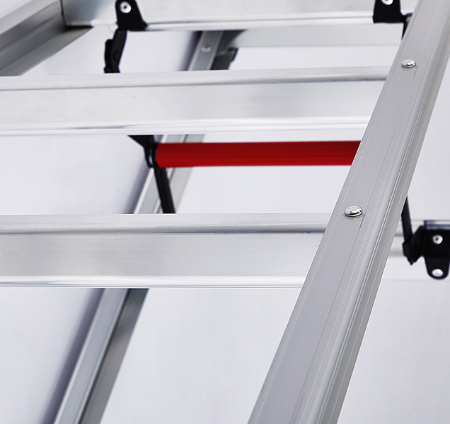 特制“一觸式橫桿”收納,使用時下壓至平穩(wěn)固梯身,收納時上提瞬間收疊。秒開妙收,讓收納更加方便快捷。
